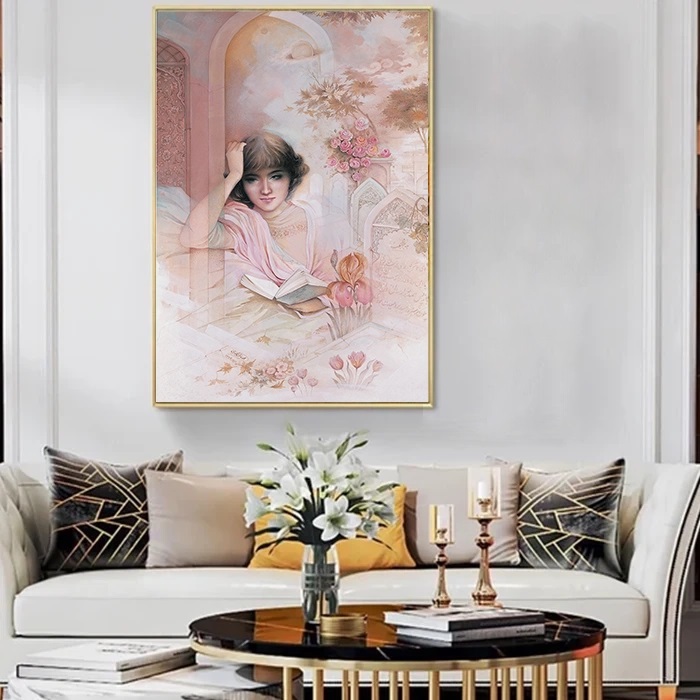 Blending classical Persian miniature techniques with a timeless sense of serenity, this piece invites the viewer into a world of contemplation and inner rest. It stands as a testament to the refinement of detail, harmony of colors, and spiritual depth characteristic of Aghamiri’s art