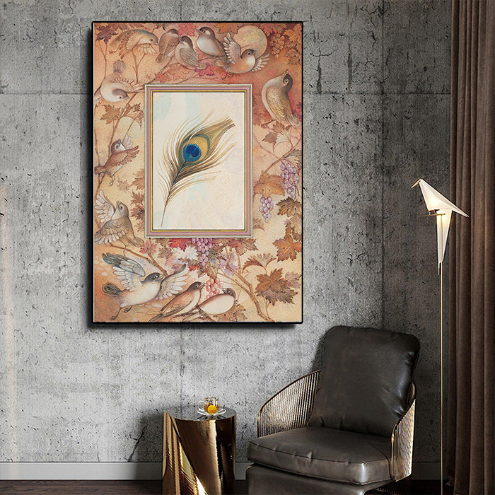 With its delicate lines and elegant composition, Peahen Feather captures the symbolic beauty of the peahen’s feather — a motif of grace, nobility, and spiritual subtlety. The harmony of detail and color highlights Aghamiri’s mastery of Persian miniature, blending tradition with timeless poetic expression